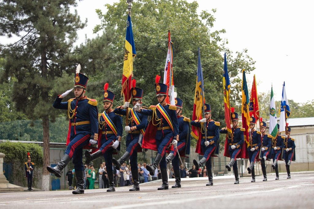 Momentul solemn a fost amplificat şi prin faptul că în faţa formaţiunilor au defilat Drapelele de Luptă şi corporative, cele actuale şi istorice, ale instituţiilor de învăţământ subordonate în diferite perioade Ministerului Afacerilor Interne – actualmente exponate ale Muzeului instituţiei.