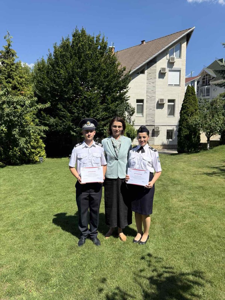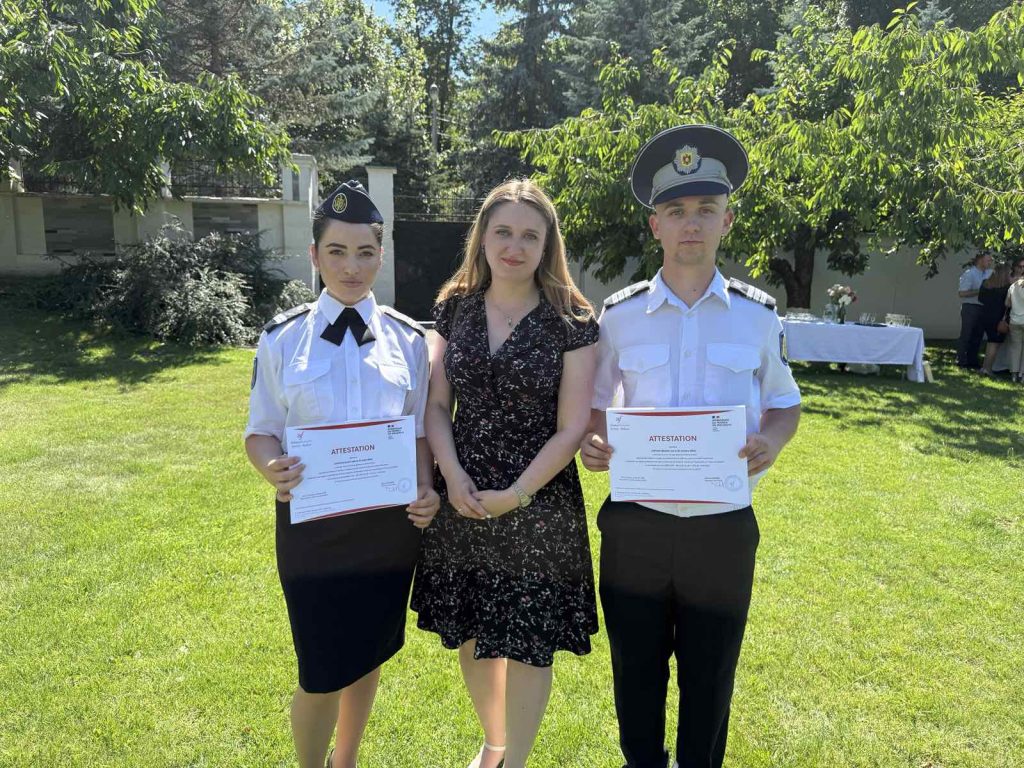 Studenții Academiei „Ștefan cel Mare” ai Facultății drept, administrație, ordine și securitate publică – Lavciuc Mădălin, anul II și Levițchi Emilia, anul I – care au beneficiat în anul curent de cursuri de limba franceză oferite de Alianța Franceză în cadrul unui program susținut și finanțat de Ministerul Francez al Europei și Afacerilor Externe, au fost felicitați pentru succesul obținut la examenul DELF A2 de către ambasadoarea Republicii Franceze în Republica Moldova, Excelența Sa, doamna Dominique Waag, în prezența Ministrei Afacerilor Interne a Republicii Moldova, doamnei Daniella Misail-Nichitin.