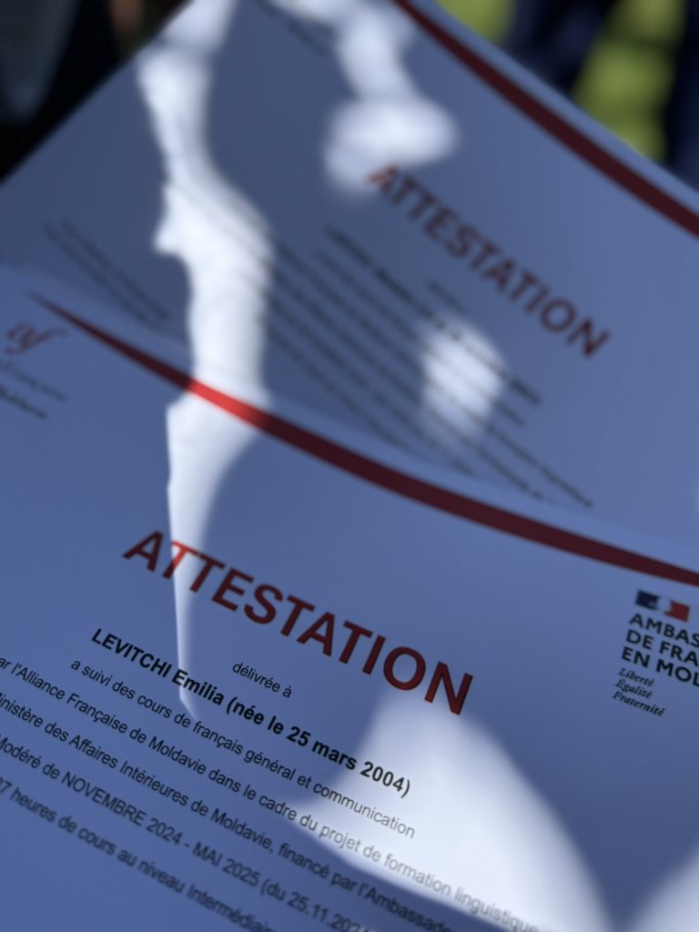 Evenimentul a evidențiat efortul, implicarea și progresul cursanților care au demonstrat perseverență și dedicare pe parcursul programului de instruire. În cuvântările oficiale s-au exprimat mulțumiri și aprecieri pentru parteneriatul franco-moldav, fiind subliniată importanța competențelor lingvistice în dezvoltarea profesională continuă.