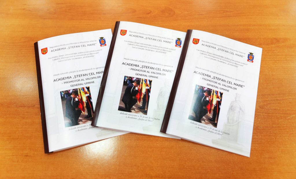 La data de 3 decembrie 2025, membrii Catedrei management și comunicare profesională cu sprijinul activ al studenților implicați în Cercul științific studențesc „Academos”, au organizat și desfășurat masa rotundă științifică studențească cu genericul „Academia „Ștefan cel Mare” – promotor al valorilor general-umane”. Evenimentul a fost dedicat marcării a 35 de ani de la fondarea Academiei, instituție cu un rol esențial în formarea profesională și moral-civică a viitorilor specialiști în domeniul securității publice.