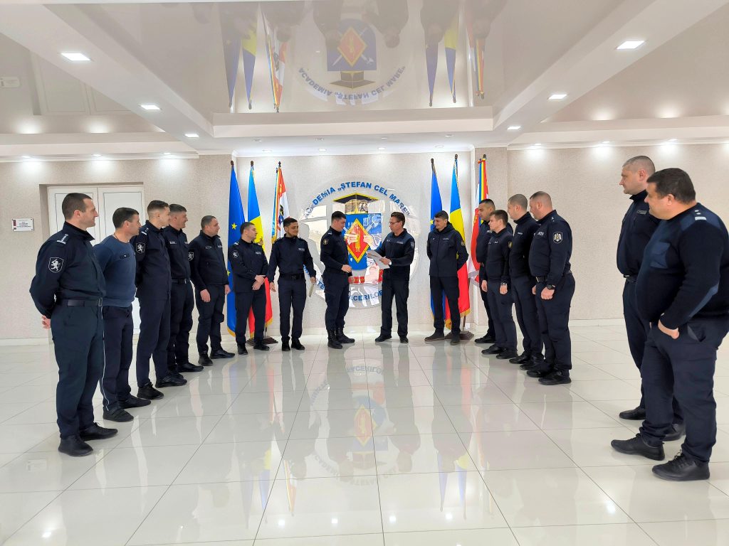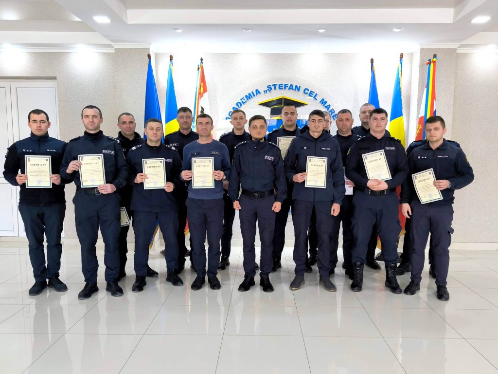 Competențele şi abilitățile profesionale formate pe parcursul instruirii de către cei 15 polițiști, au fost confirmate prin certificatul de absolvire.