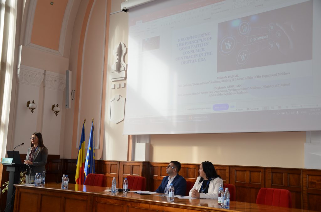 Academia „Ștefan cel Mare” a Ministerului Afacerilor Interne a fost reprezentată de lectorii universitari dr. Mihaela Pascal și dr. Eugenia Gugulan, care au susținut, în coautorat, lucrarea științifică intitulată „Reconfigurarea principiului bunei-credințe în contractele de consum în era digitală”.