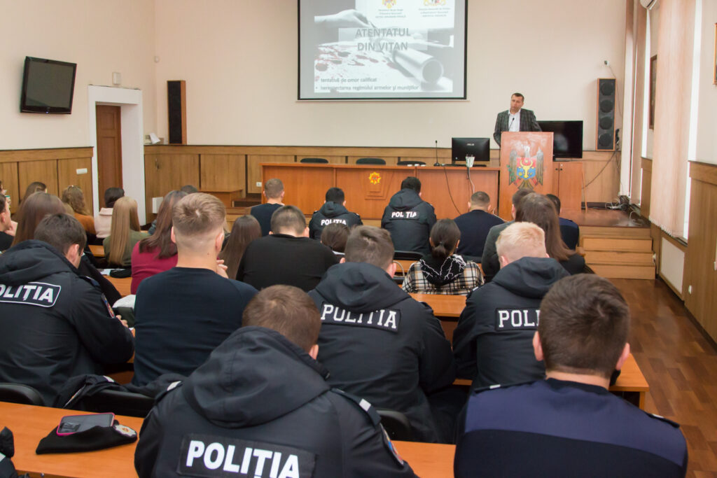 Lecţia a fost bazată pe cazuistică, având drept scop formarea profesională şi consolidarea capacităţilor de combatere şi prevenire a infracţiunilor de omor a viitorilor apărători ai ordinii de drept.