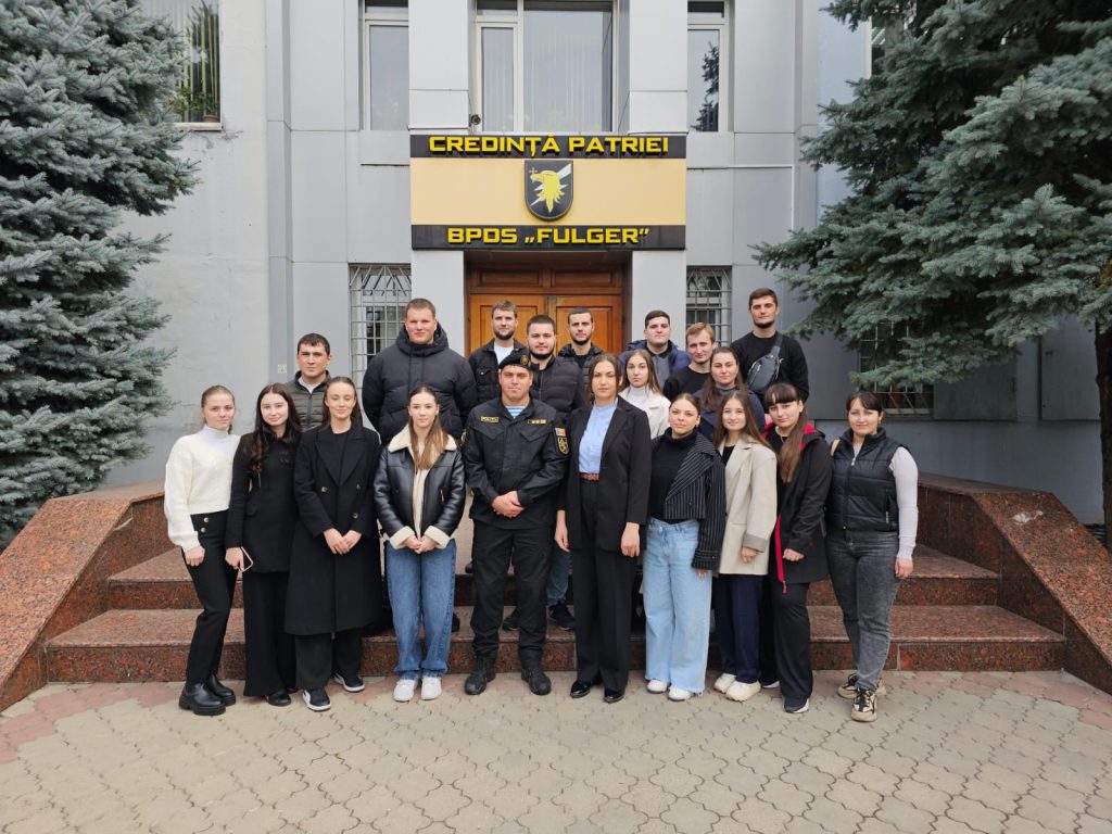 În acest sens, în perioada 30 – 31 octombrie, în cadrul cursului ,,Modul de orientare spre specializare: Asistenţă juridică în instituţii publice şi private”, studenții anilor III și IV de studii, învățământ cu frecvență, studii cu taxă din cadrul Facultății drept, administraţie, ordine şi securitate publică au vizitat Brigada de poliție cu destinație specială „Fulger” din cadrul Inspectoratului General al Poliției.